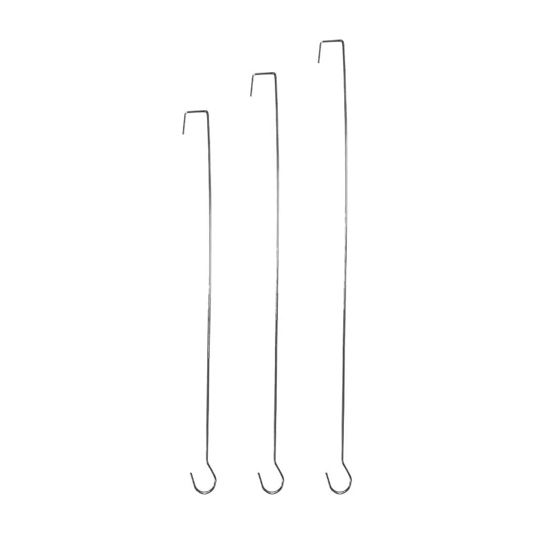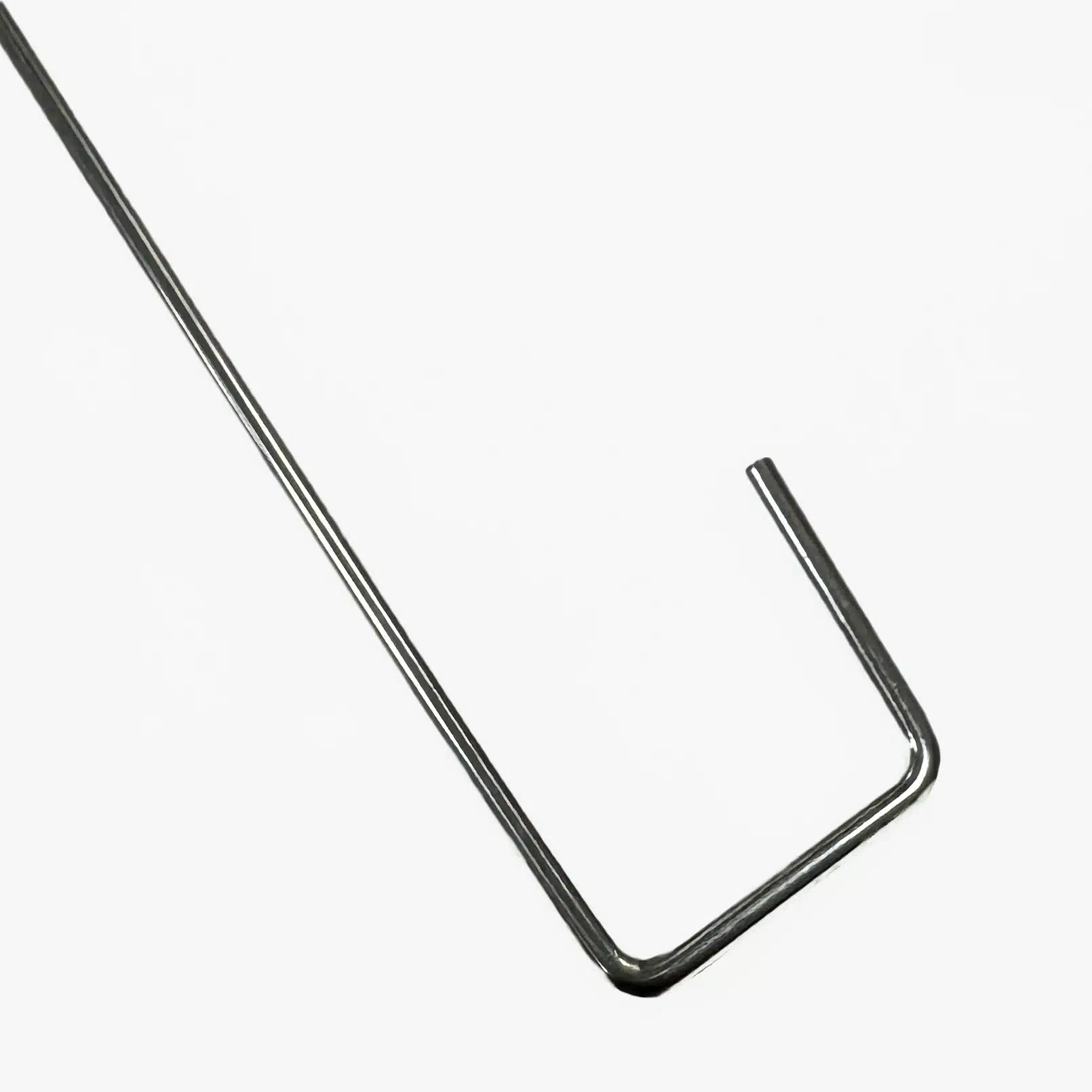 2 mm metallilangasta valmistettu somistuskoukku, jonka toinen pää pyöreä ja toinen kulmikas.