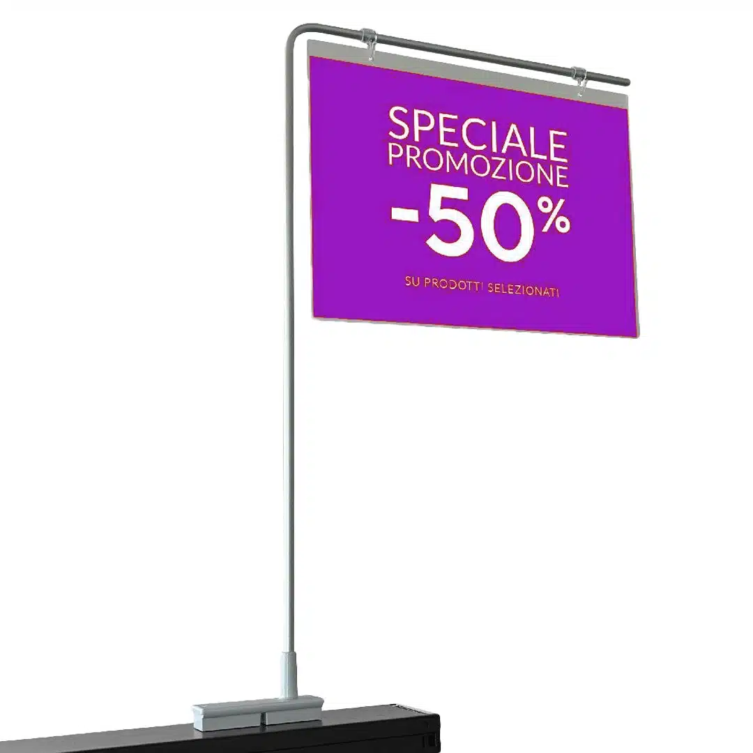 Alumiinista valmistettu, kevytrakenteinen banneripidike magneettikiinnityksellä. Pidike sopii kiinnitettäväksi esim. myymäläkalusteiden päälle tai ylähyllyille tuotteiden taakse.